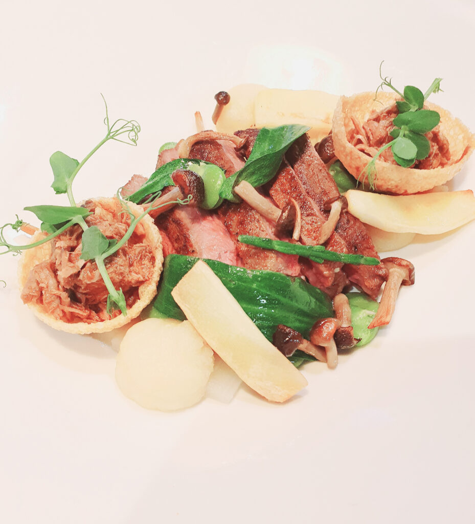 pastinaakcrème | gebakken polenta | king boleet |eendenlever | jus van tijm en sjalot